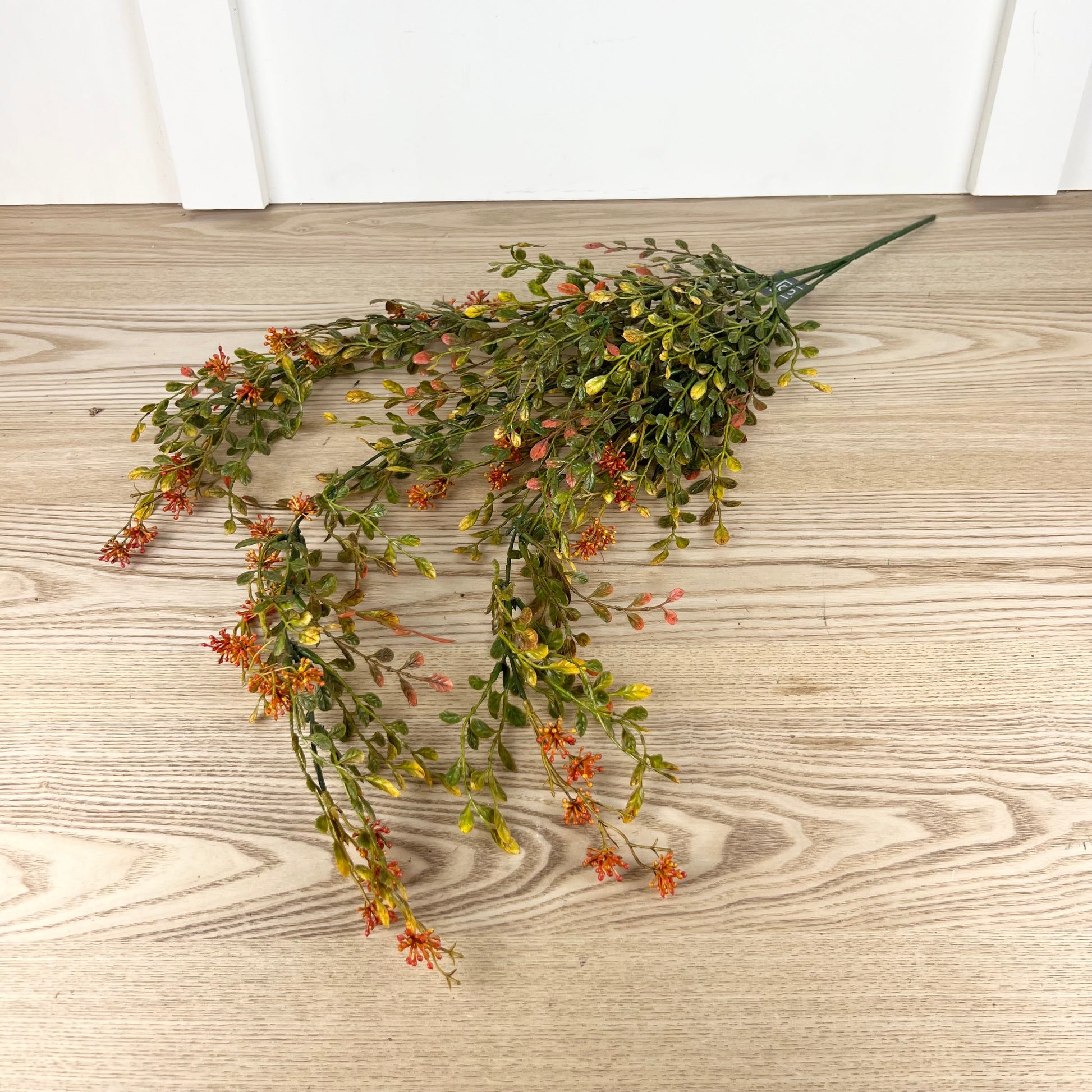 Boxwood Berry Vines are a subtle fall foliage with a touches of yellow and orange. Pair this vine with our milk can planter, or use as a fall filler for any centerpiece!