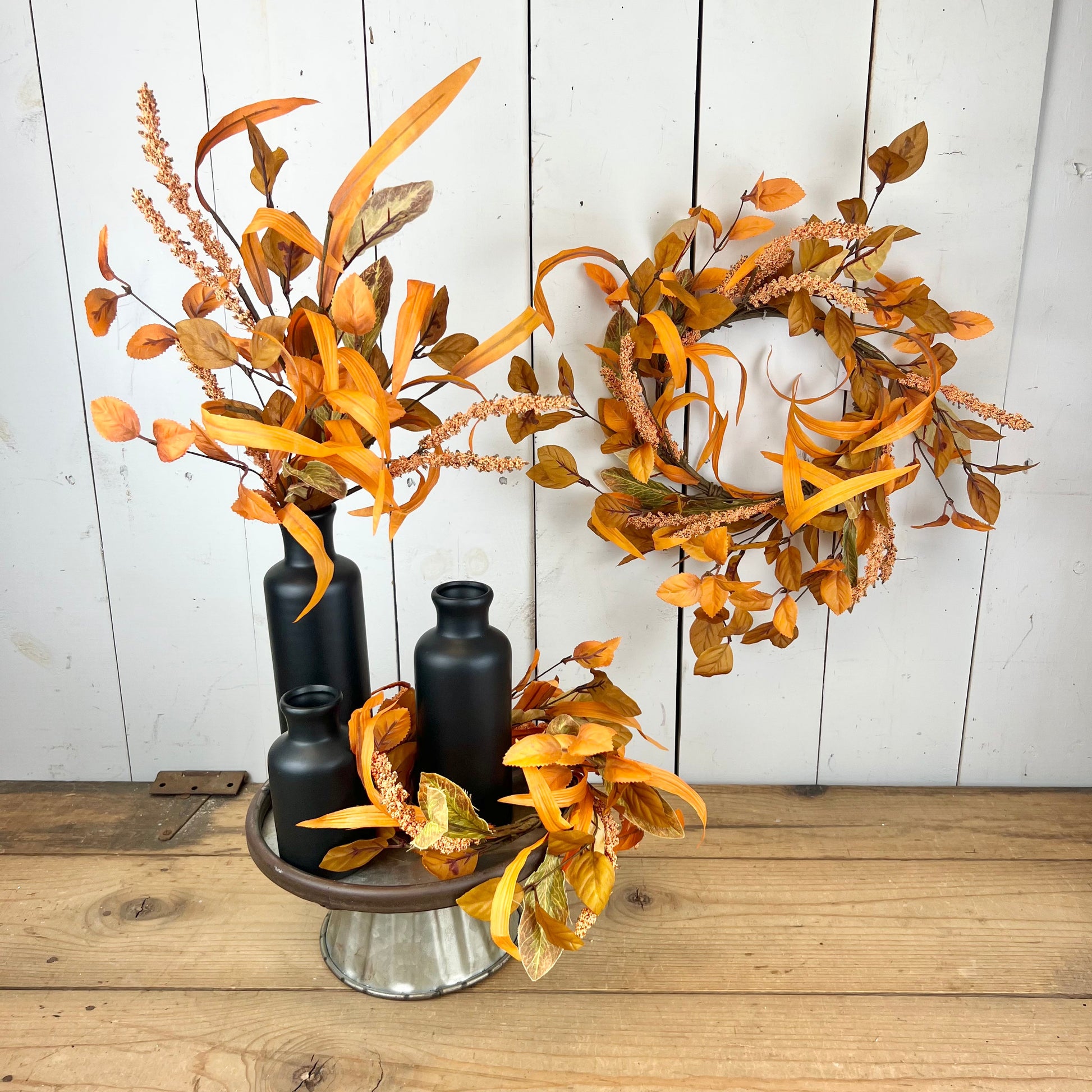 Beautify every room in your home with the sunset hues of our fall leaf & seed pillar candle ring. Mixed golden leaves and seeds are expertly arranged to be picture perfect. It will bring cheery warmth to your favorite rooms as seasonal decor that's the epitome of autumn.