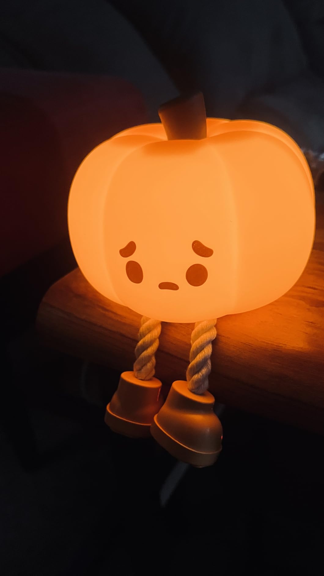eature, adjusting the brightness of the Halloween Pumpkin Night Light is as simple as apping it. Whether you need a dim light for a peaceful night's sleep or a brighter glow for eading, this lamp has got you covered. Plus, it's rechargeable, so you don't have to worry about constantly replacing batteries. Enjoy hours of uninterrupted, soothing light with the convenience of USBcharging.