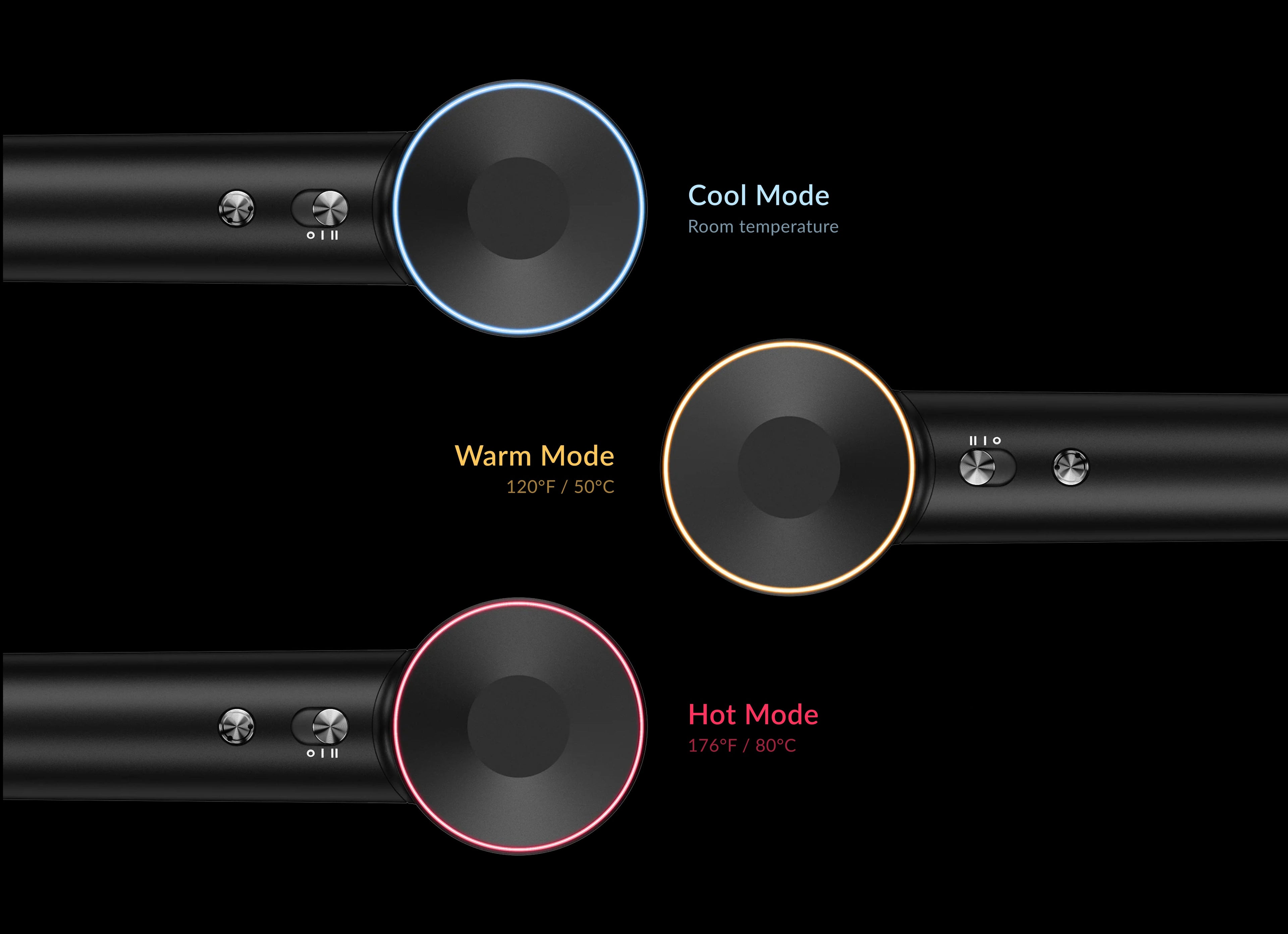 3-color LED ring temperature mode shows you the exact temperature that the air is blown out.