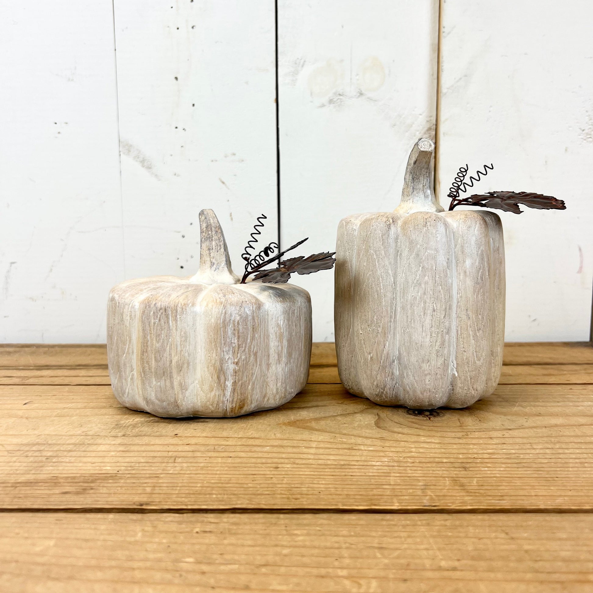 Washed finish, resin pumpkins.