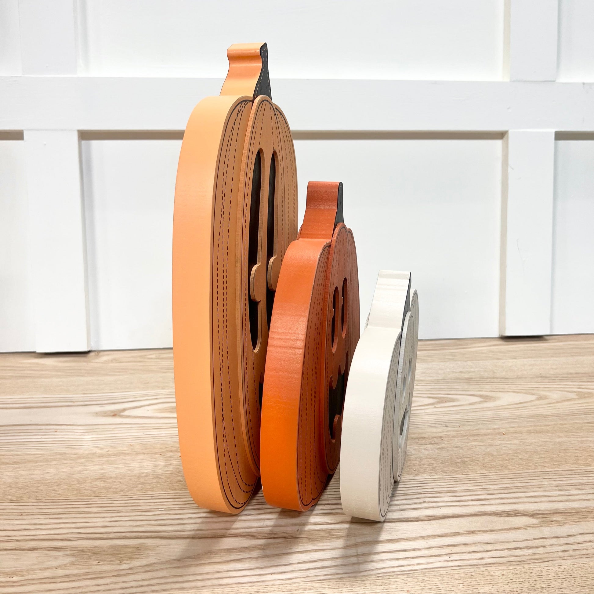 Reversible jack-o-lantern, wooden pumpkins.