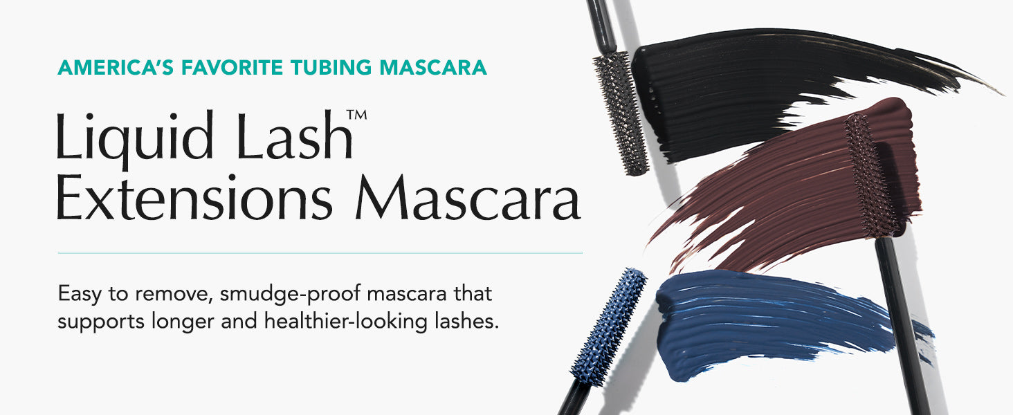 Our Liquid Lash™ Extensions Mascara is water-resistant and will last all day without clumping, streaking, or flaking. Our innovative tubing mascara formula holds up beautifully through rain, sweat, tears, and other daily activities that may cause your eyes to water. We designed it this way so that it's easy to apply and remove.